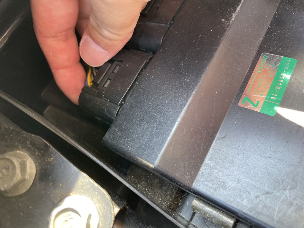 シート下に収まっているECUをズルズル~っと引っ張り出します。