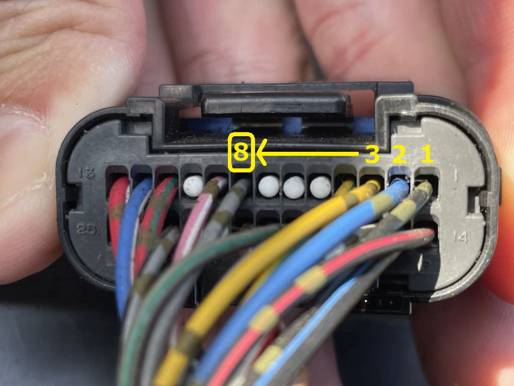 8番の灰色配線が目的のクランクポジションセンサーです。