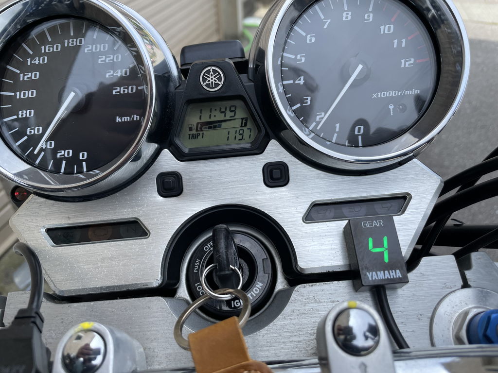 現行バイクの多くは今何速なのか表示するシフト・インジケーターが装備されていますが、設計の古いXJR1300には当然付いていません。