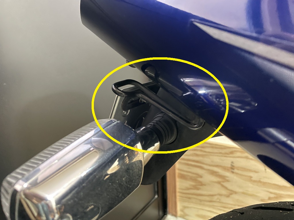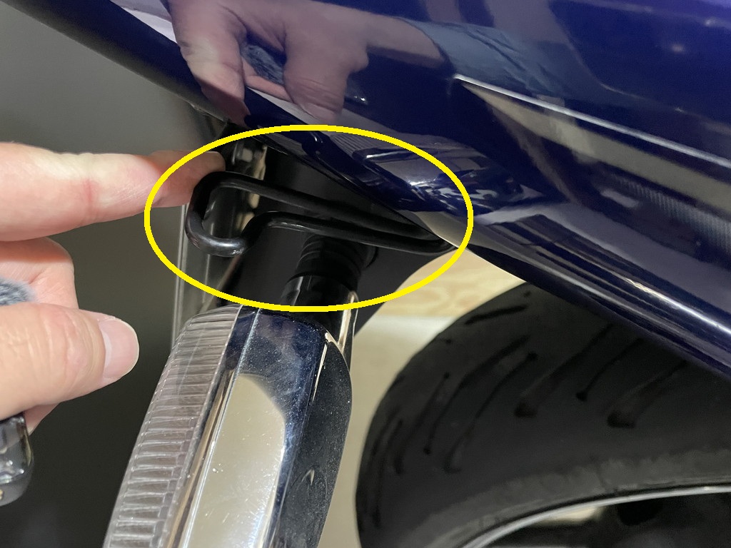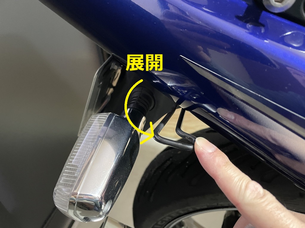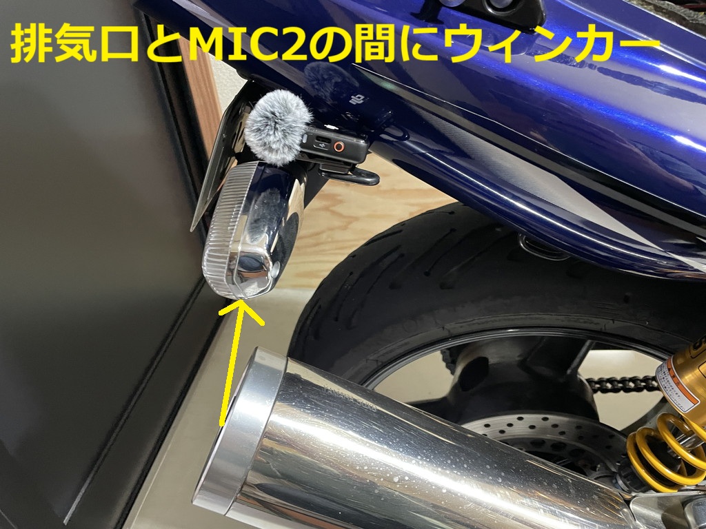 改めて①位置のフックに付けて観察すると、マフラー出口とMIC2の間にはウィンカーが位置していますよね?
