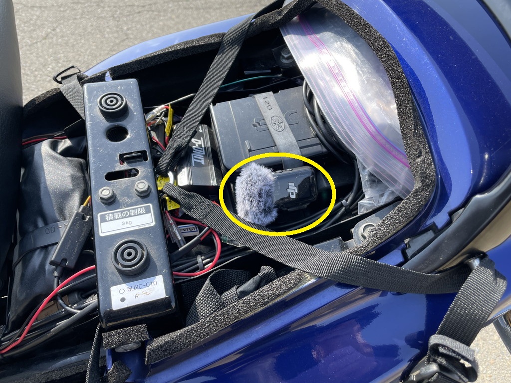 前回試験したリトルカブでは高品質なエンジン音を録音出来たDJIのMIC2ですが、今回は本命のXJR1300に取付けてみます。