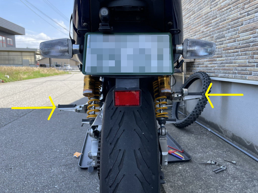 なので右のタンデムステップを上方向に移設するオフセットパーツが付属しています。