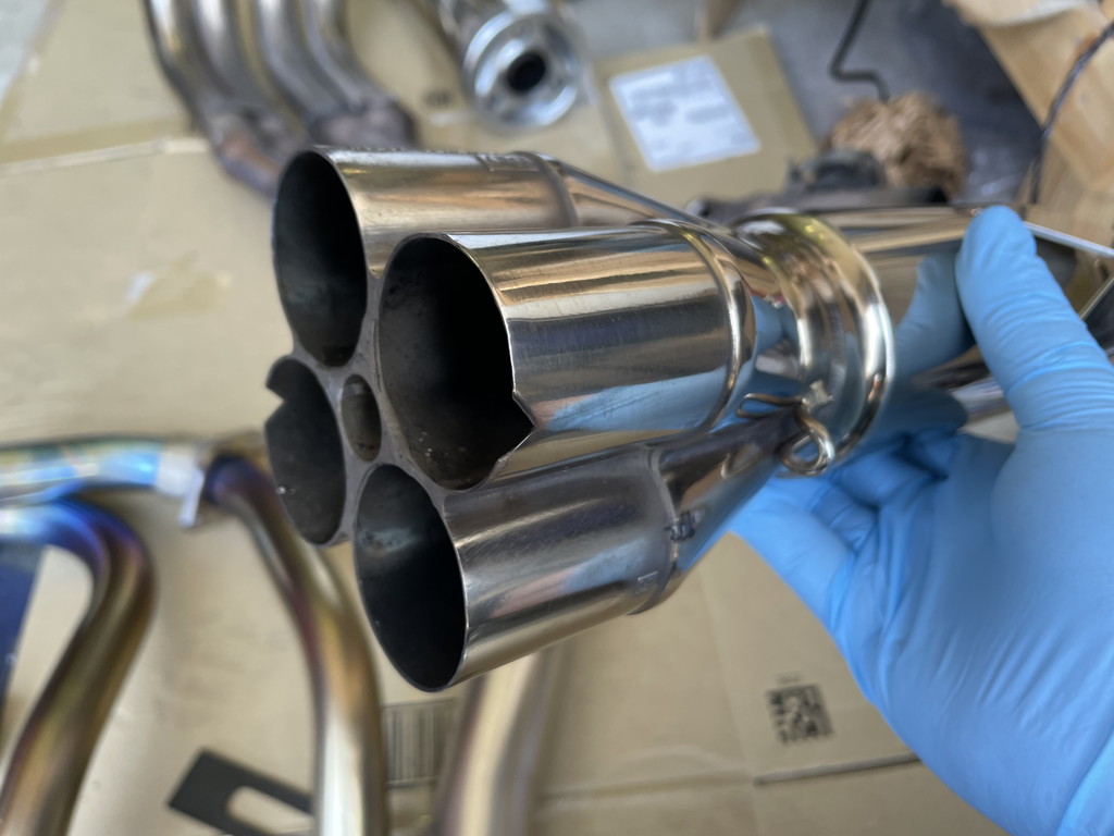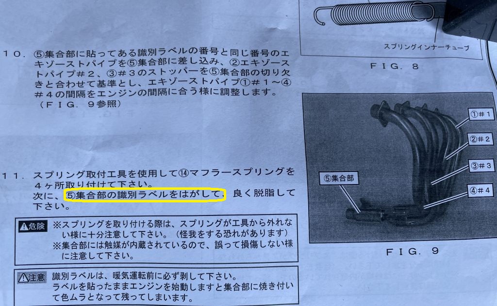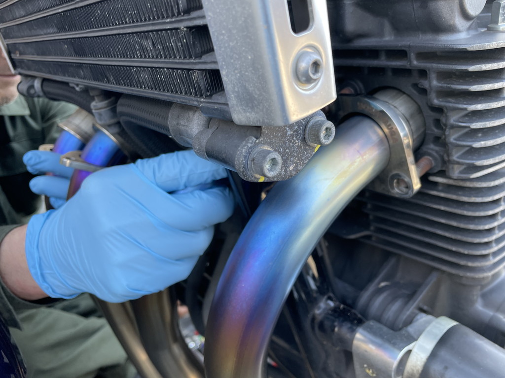 4本の排気管が螺旋状に回転しながら流れていく構造なので、エキパイを点火順に接続する必要がありあます。