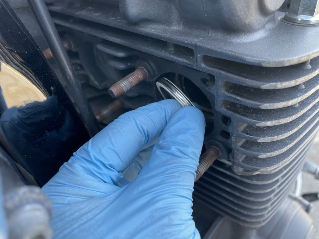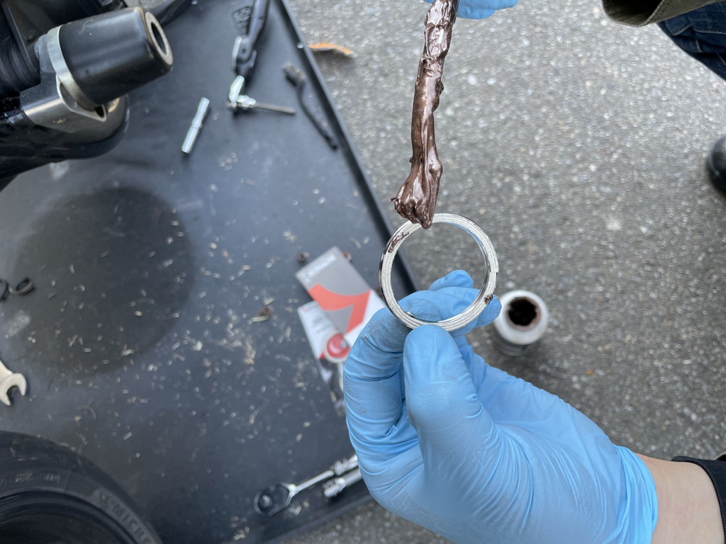 まず忘れずにガスケットを排気ポートに付けるんですが、ポロっと落ちてくるので焼き付き防止に使うカッパーグリスを僅かに塗布しました。