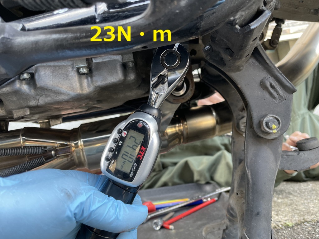 エキパイAssy取付けボルト(集合部)は純正20N・mのところ、ヨシムラでは23N・mです。