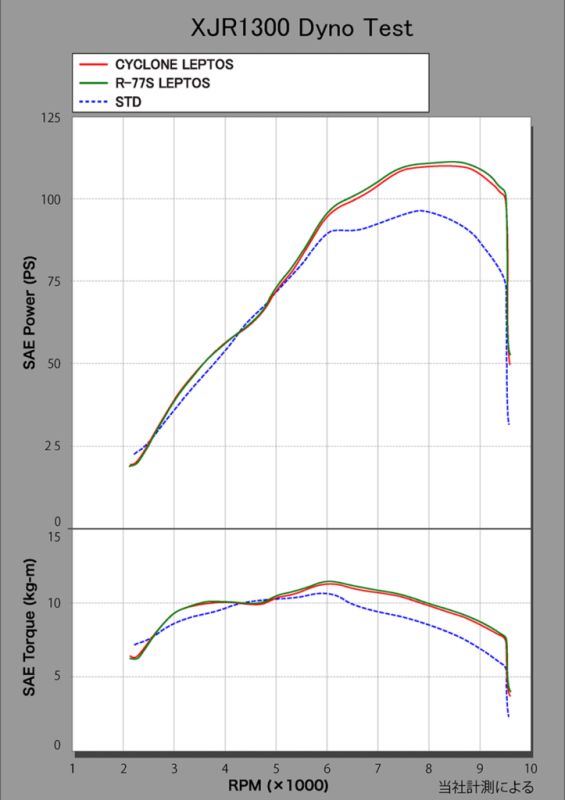 ヨシムラのデータでは6,000rpm以降のトルク落ちを軽減した分パワーが上がっています。
