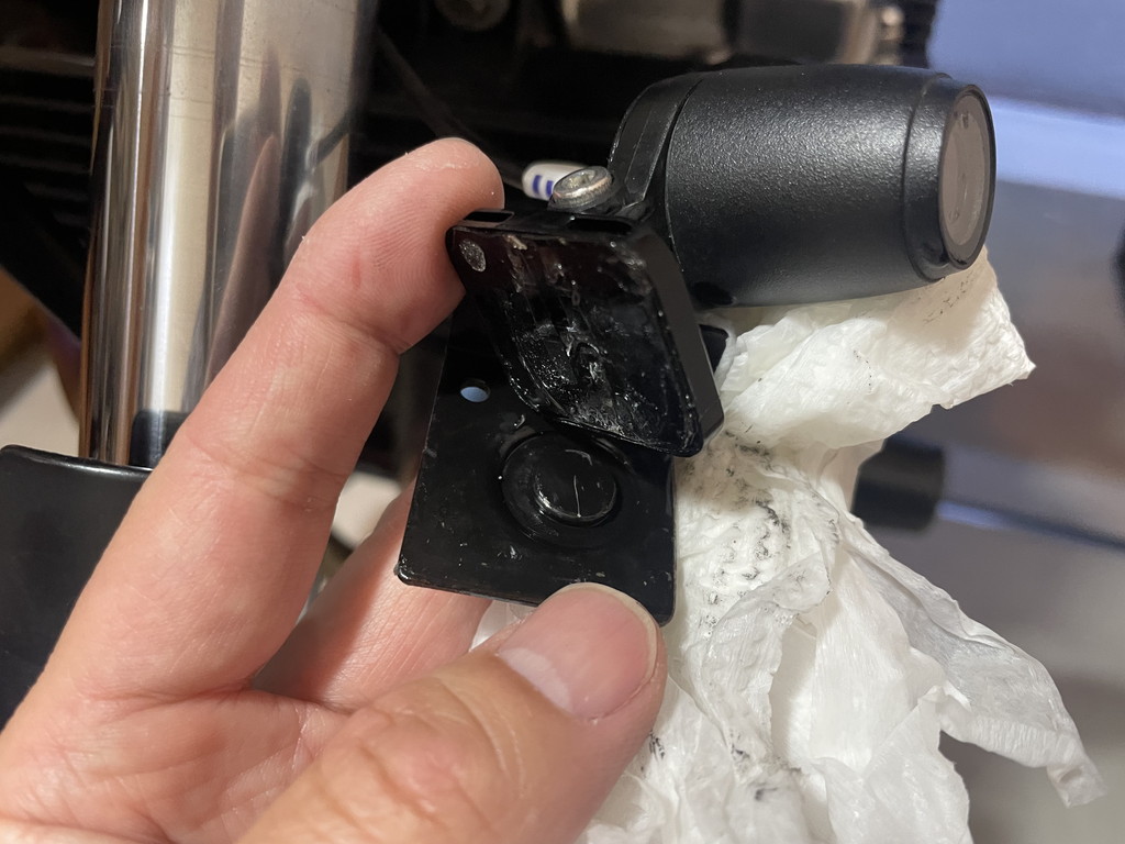 以前カメラをハンドルバーに付けていた時はコレほど酷くはなかったので、エンジンの振動でステーが共振しているのが原因と推測。