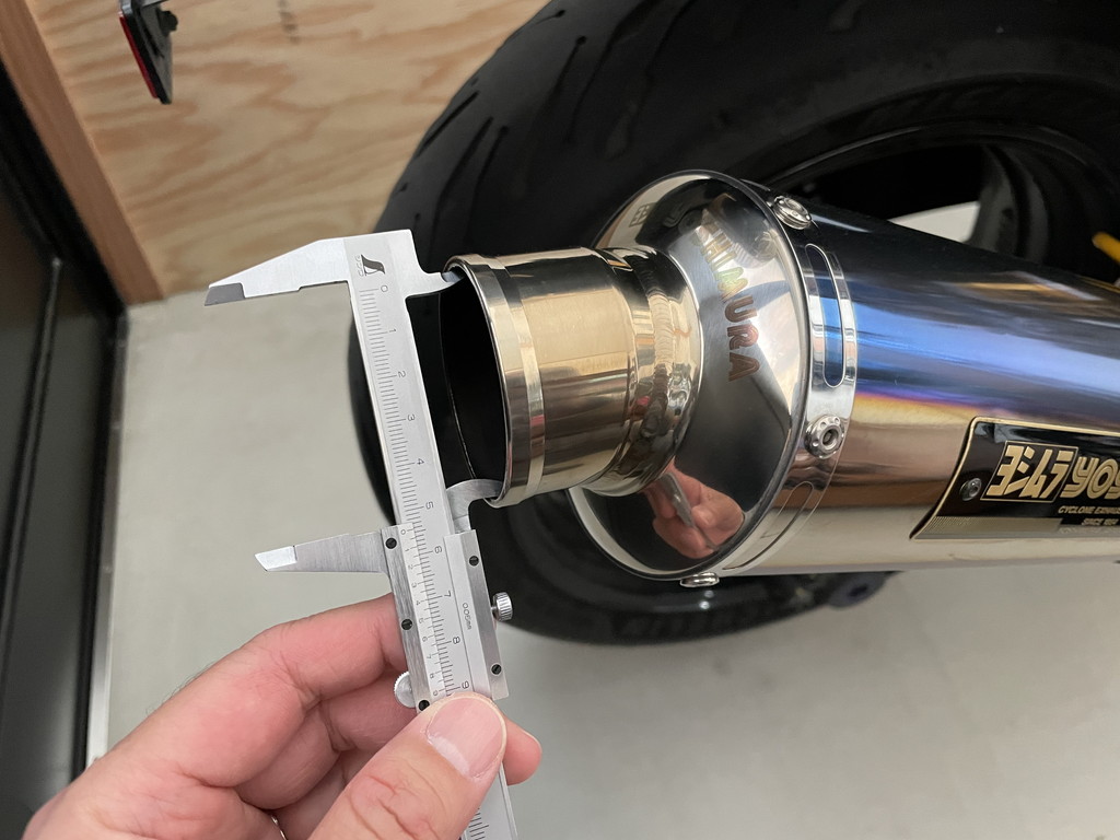 チタンサイクロンのマフラーエンドの内径は約54.2mm。