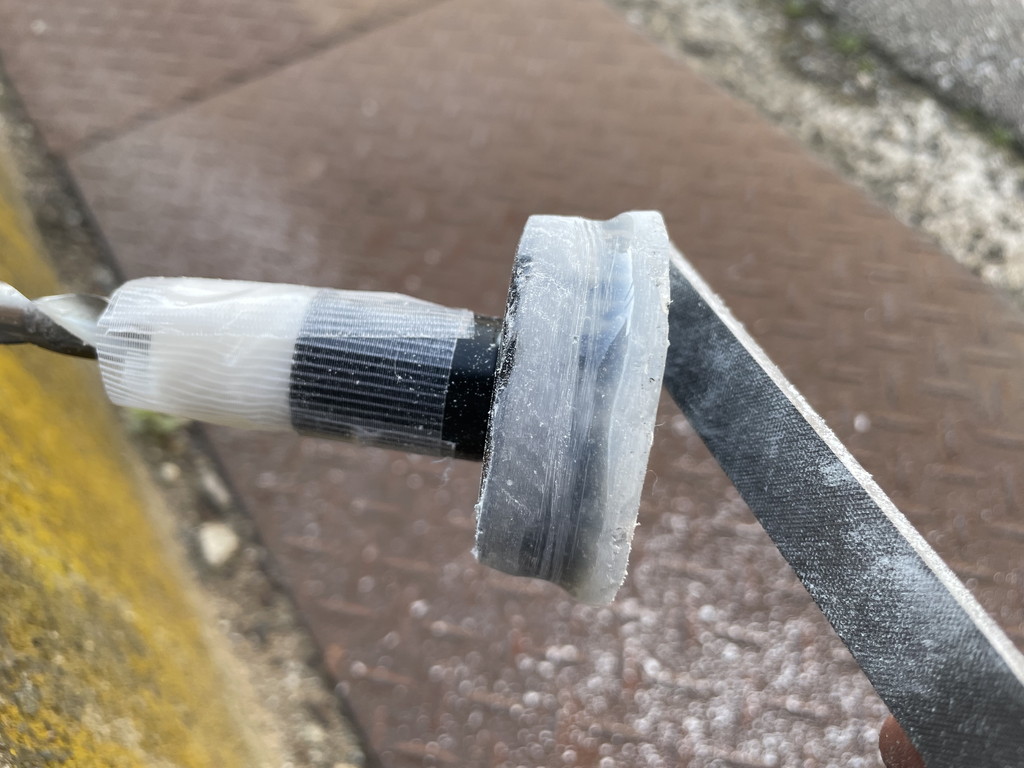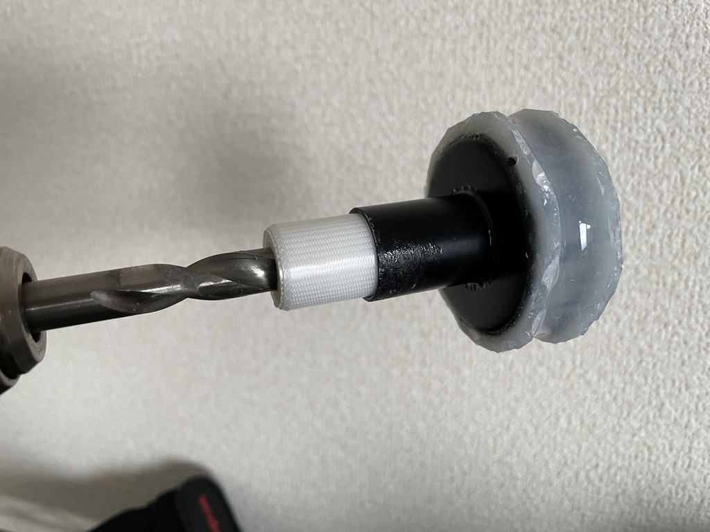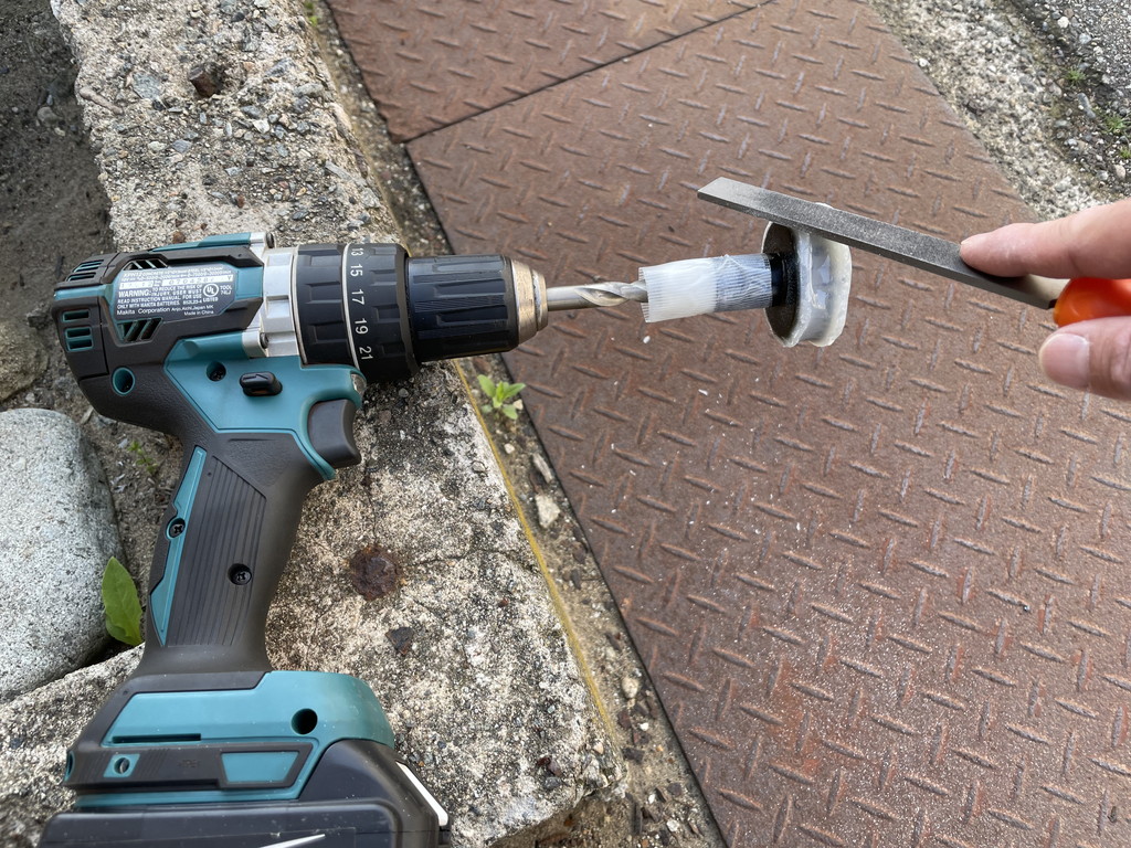 一番ぶっ太いドリルの刃に養生テープを巻いて径を太くしました。