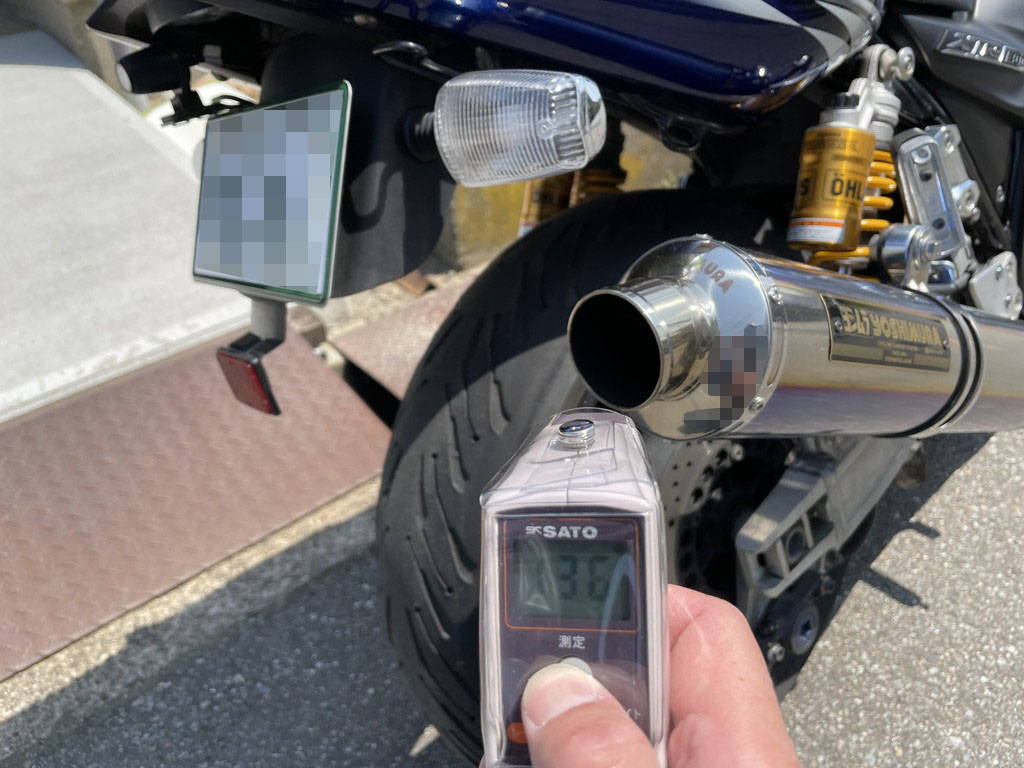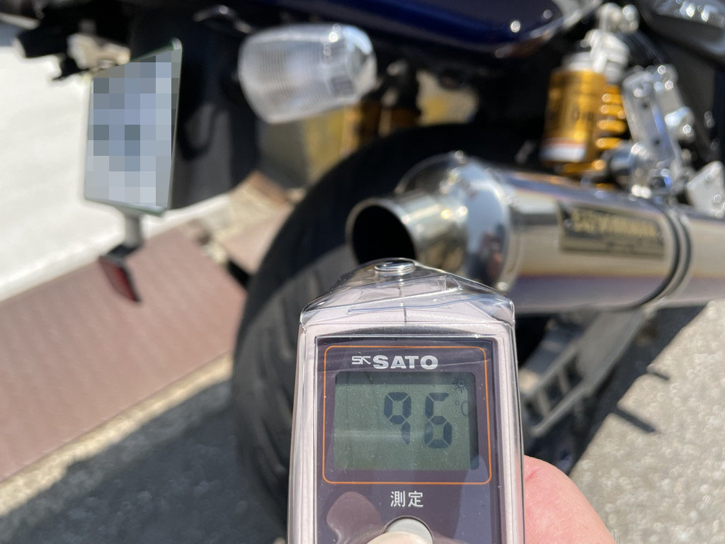 さて、消音テストに移る前に、ココでマフラーの温度を測っておきます。