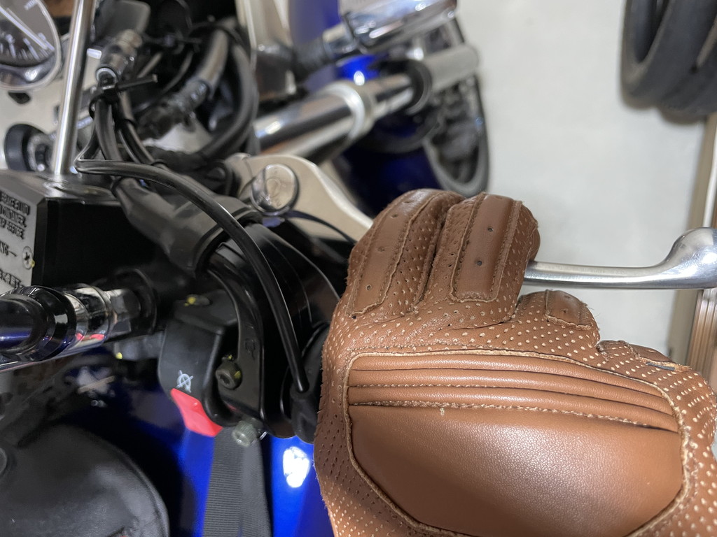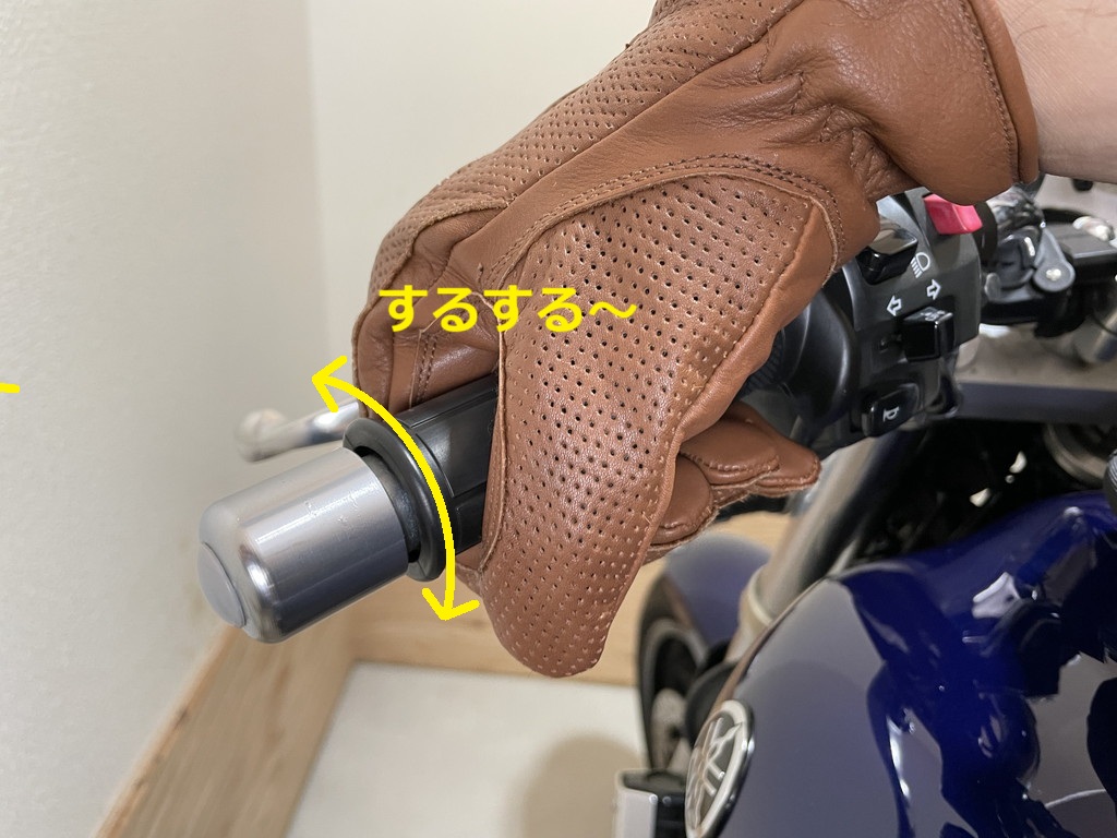 YAMAHA純正グリップでは愛用しているレザーグローブだと滑るんですよ。