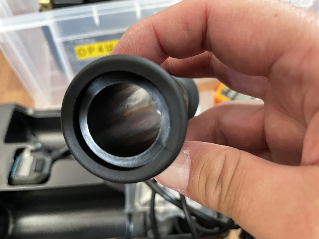 グリップヒーターの内側は左右とも固い樹脂?製でした。
