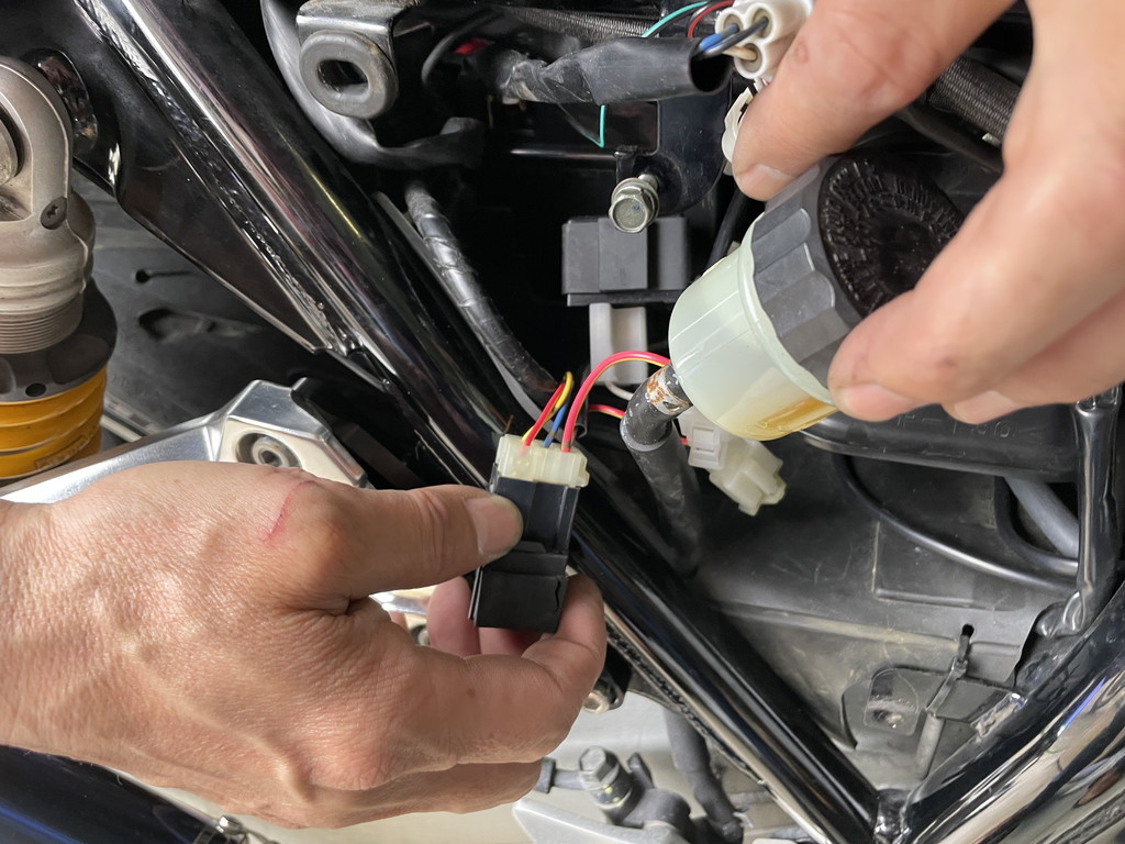 YAMAHA純正グリップウォーマーはヘッドライトリレーから電源を取る仕様。