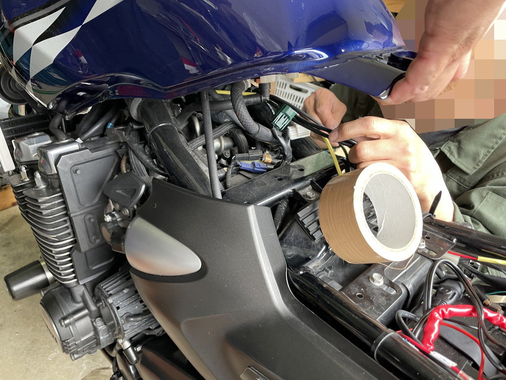 YAMAHA純正グリップウォーマー配線を取外し、ENDURANCE製グリップヒーターの配線を引き直し。
