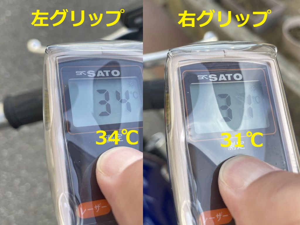 何か左右のグリップで温度差があるよーな?と思ったので走行後に温度測定。