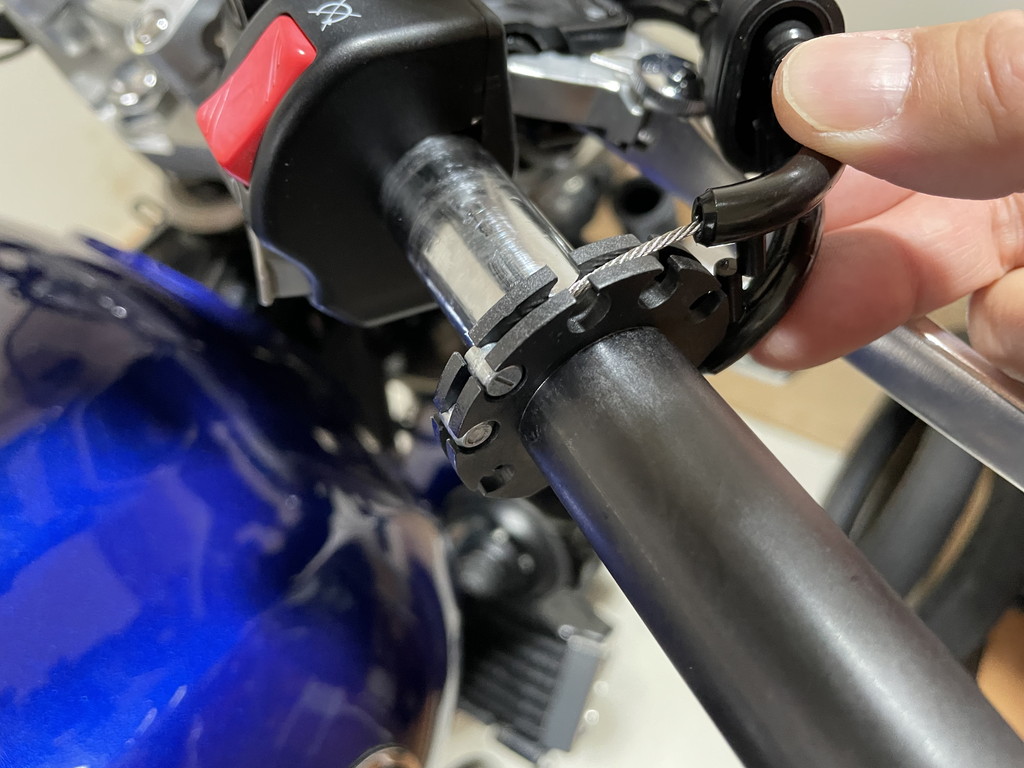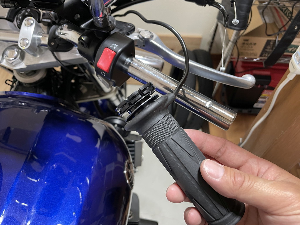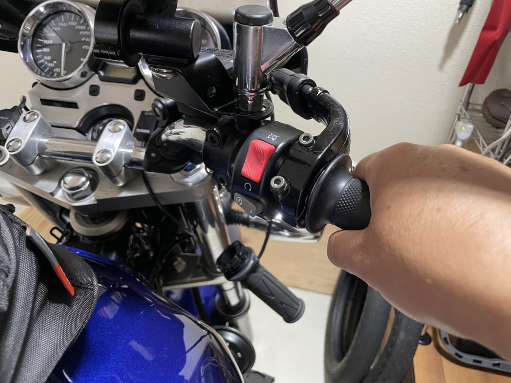 XJR1300の強いリターンスプリングの重さは相応に感じますが、YAMAHA純正グリップウォーマーの時に感じた強い抵抗感、ってか摩擦感がありません。