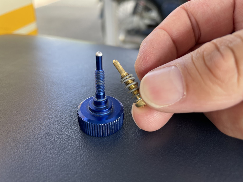 ちなみにこのスプリングはネジに抵抗を与えて、エンジンの振動等でアジャスターが空回りしないようにする為のもの。