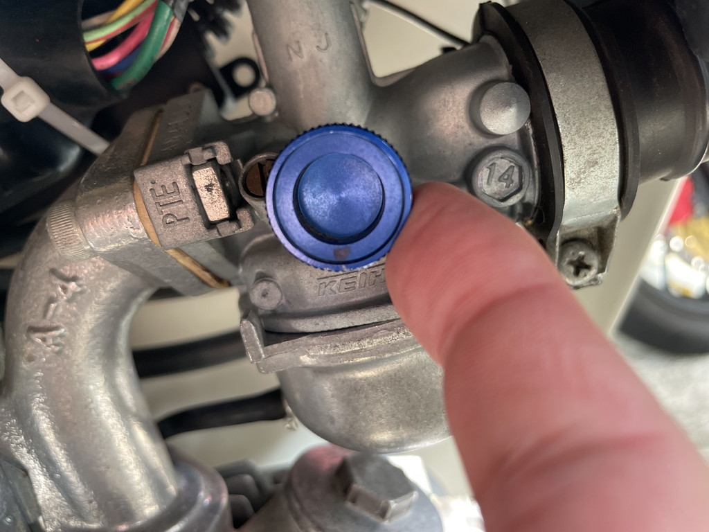 ならば試しと武川キャブ純正のネジに戻してみます。