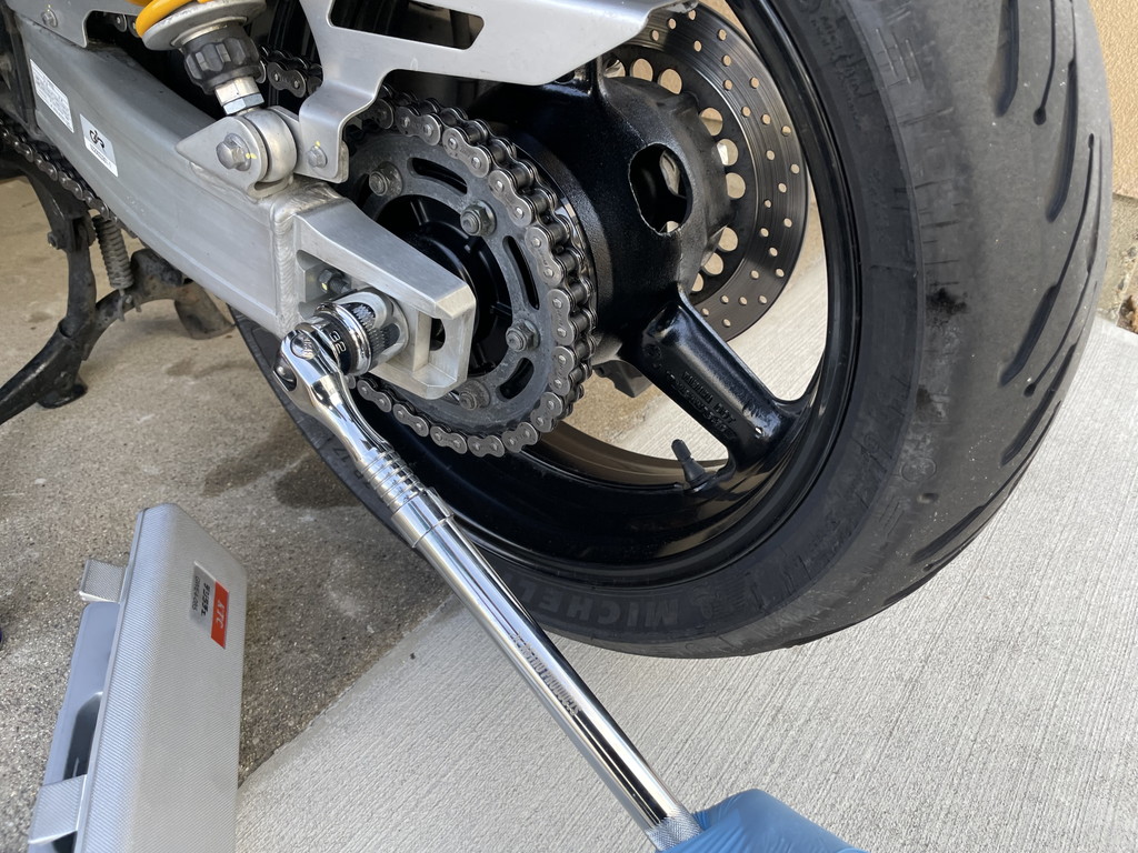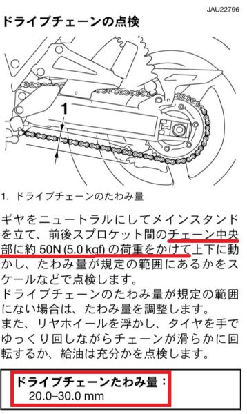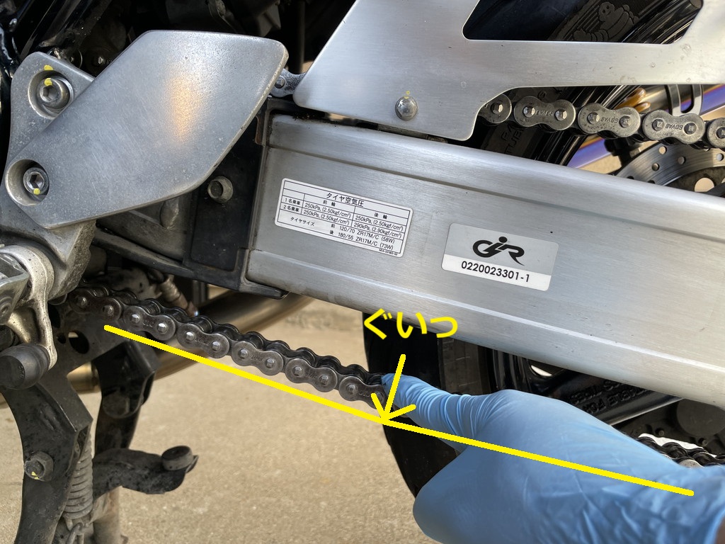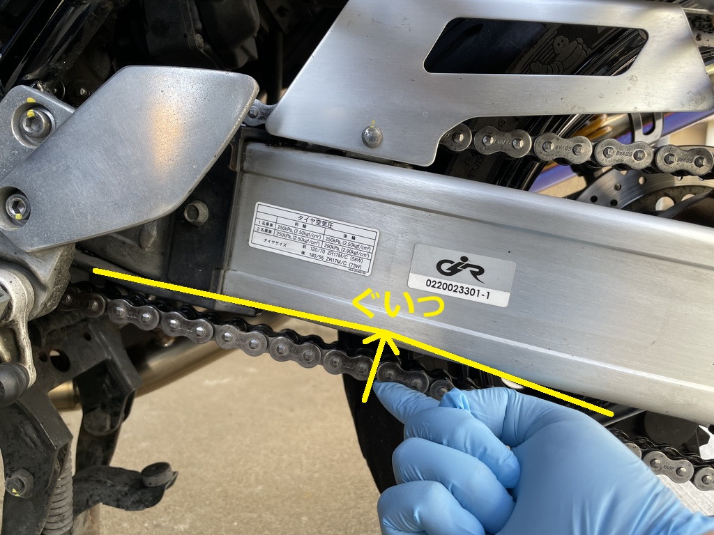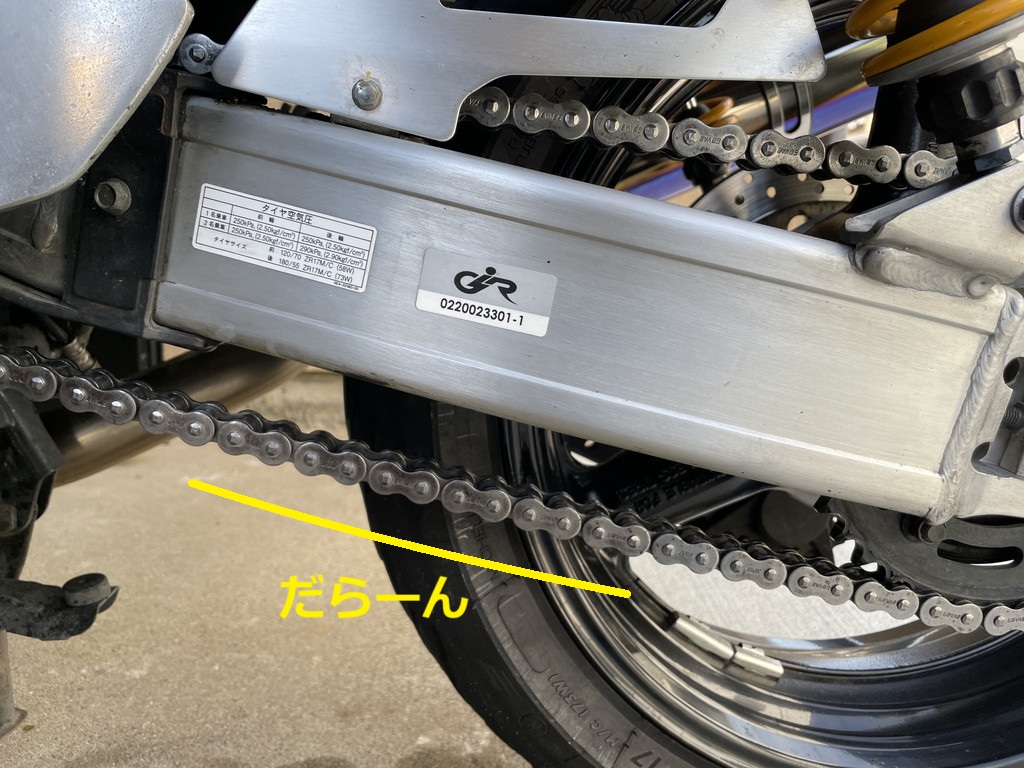 XJR1300のチェーン清掃は慣れてきましたが、テンション調整はまだ未経験でした。