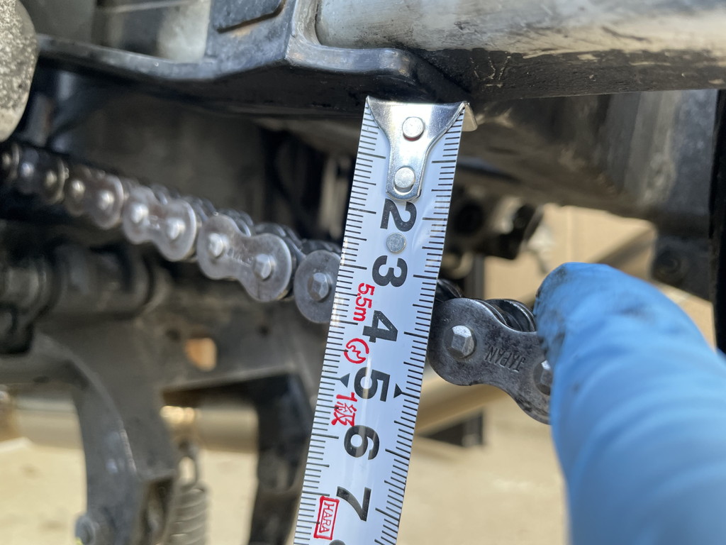 そんな感じで測ってみるとチェーンのたわみ量は34mm程度でした。
