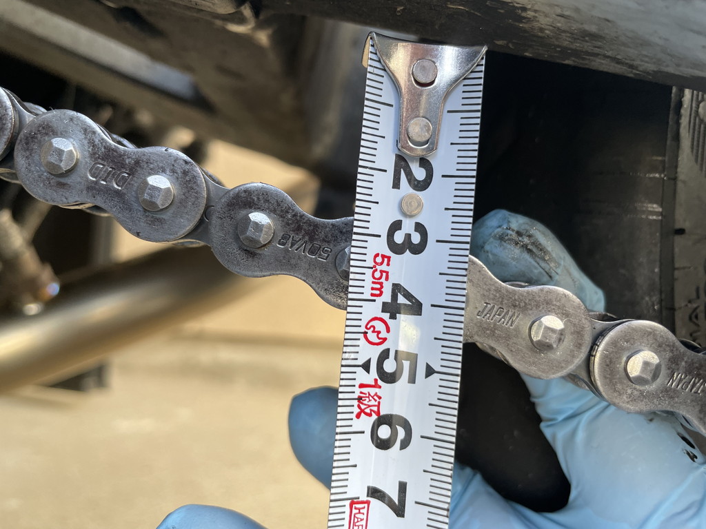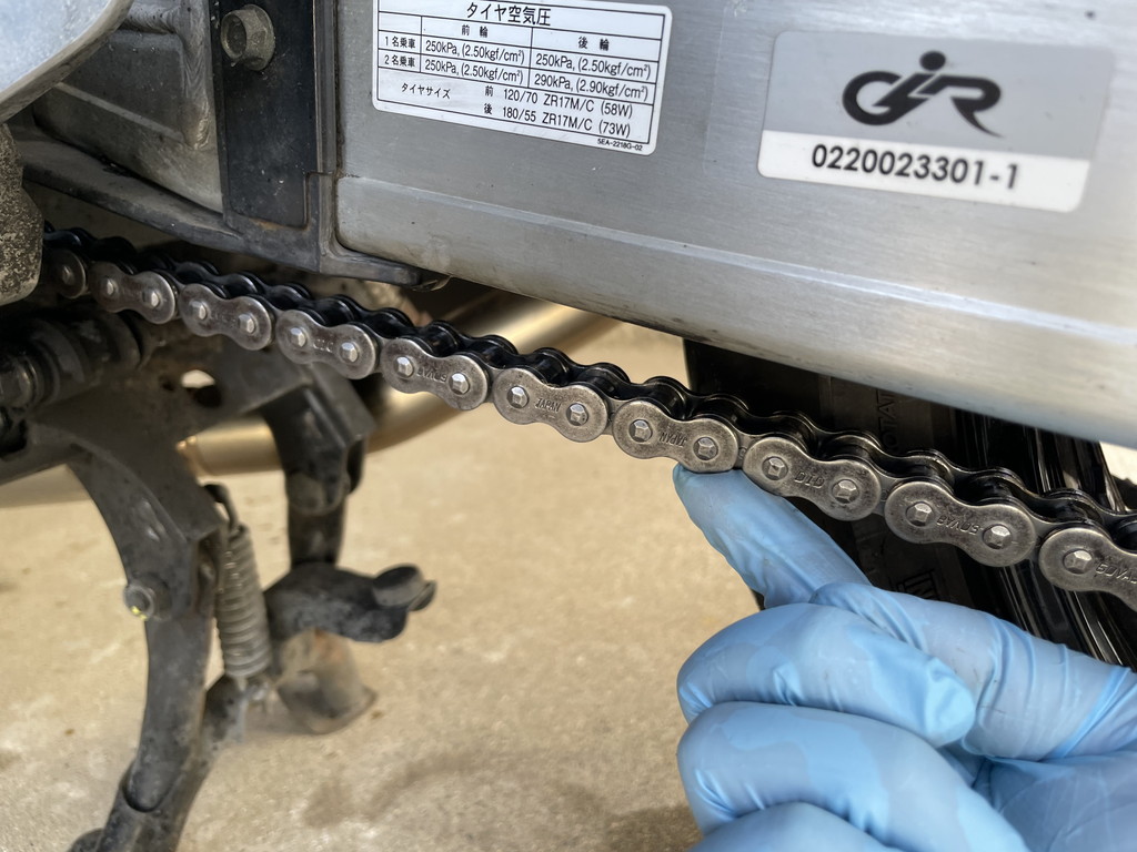 チェーンの状態を検証すると、テンションが緩い場所と張る場所が2ヵ所ずつありました。