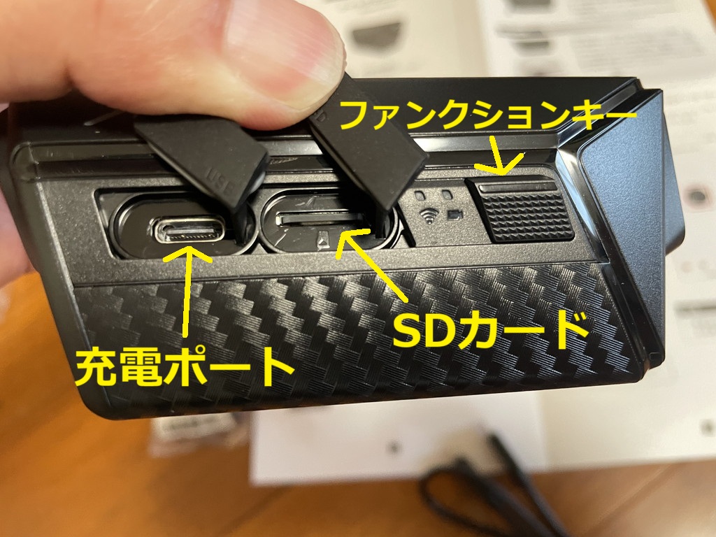 カメラ右側にはType-Cの充電ポートとMicro SDカードの挿入口、唯一の操作方法となるファンクションボタンがあります。