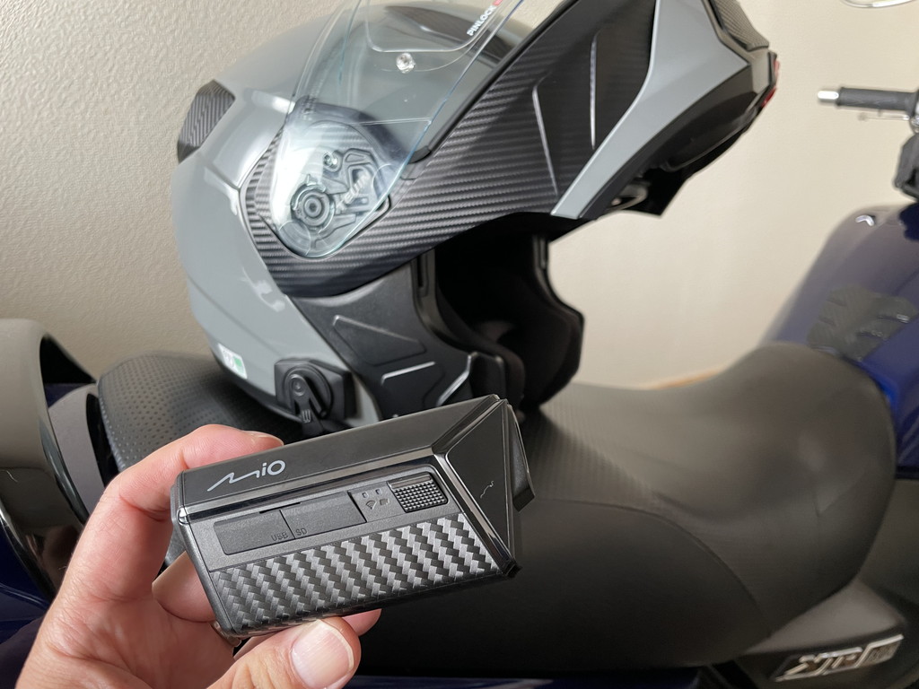 しかしながら電源事情に厳しいリトルカブには車載式では厳しそうだったので、ヘルメットマウント式のドライブレコーダーを付けていたんですよ。
