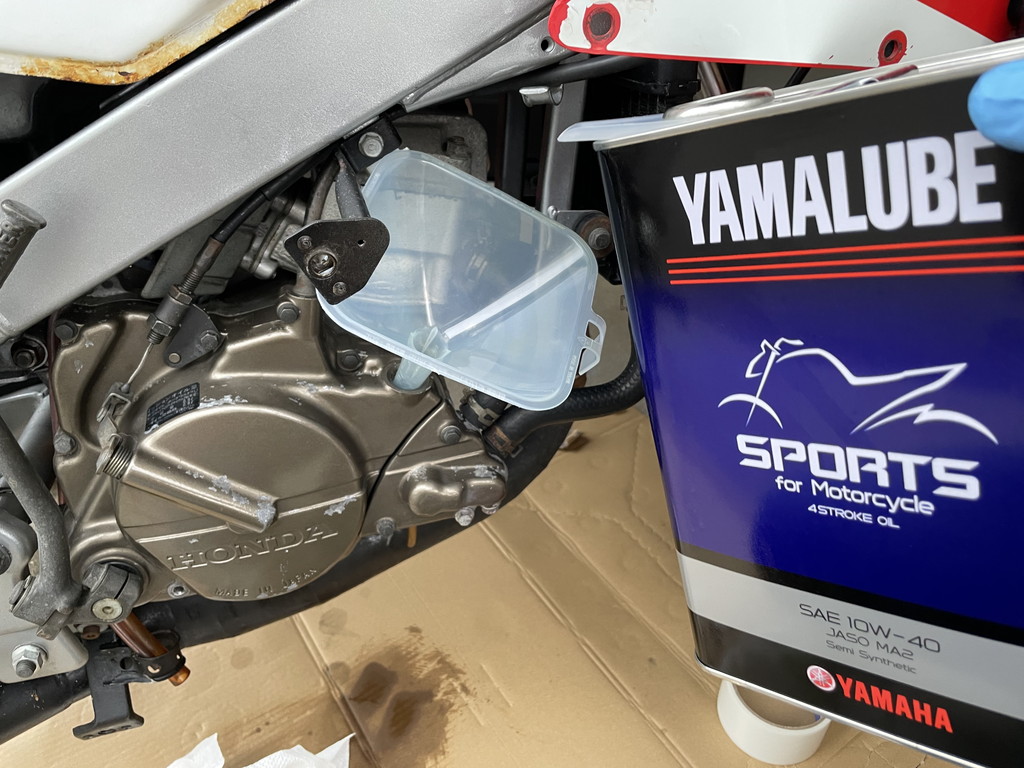 やっとオイルを入れるワケですが、入れるオイルがヤマルーブSportsなのはXJR1300の残り物だから。