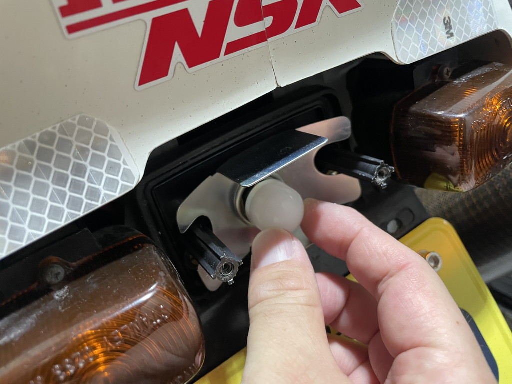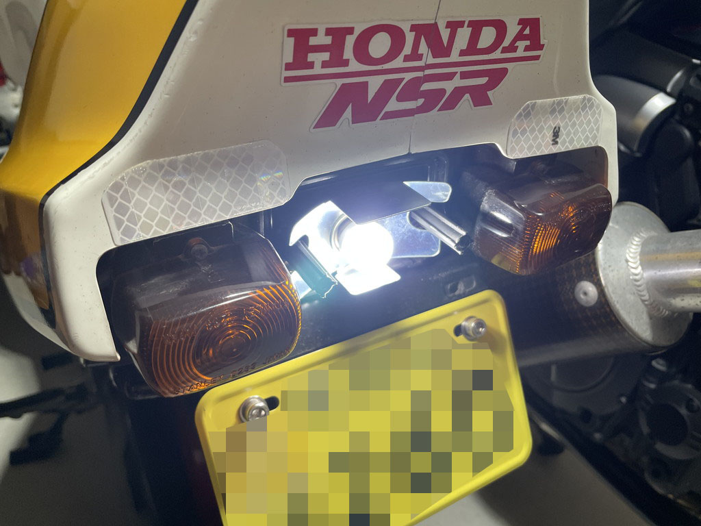 一般的にブレーキランプは赤色LEDにするのが推奨されていますが、NSR50はテールランプがナンバー灯を兼ねているので純正と同じホワイトにしています。