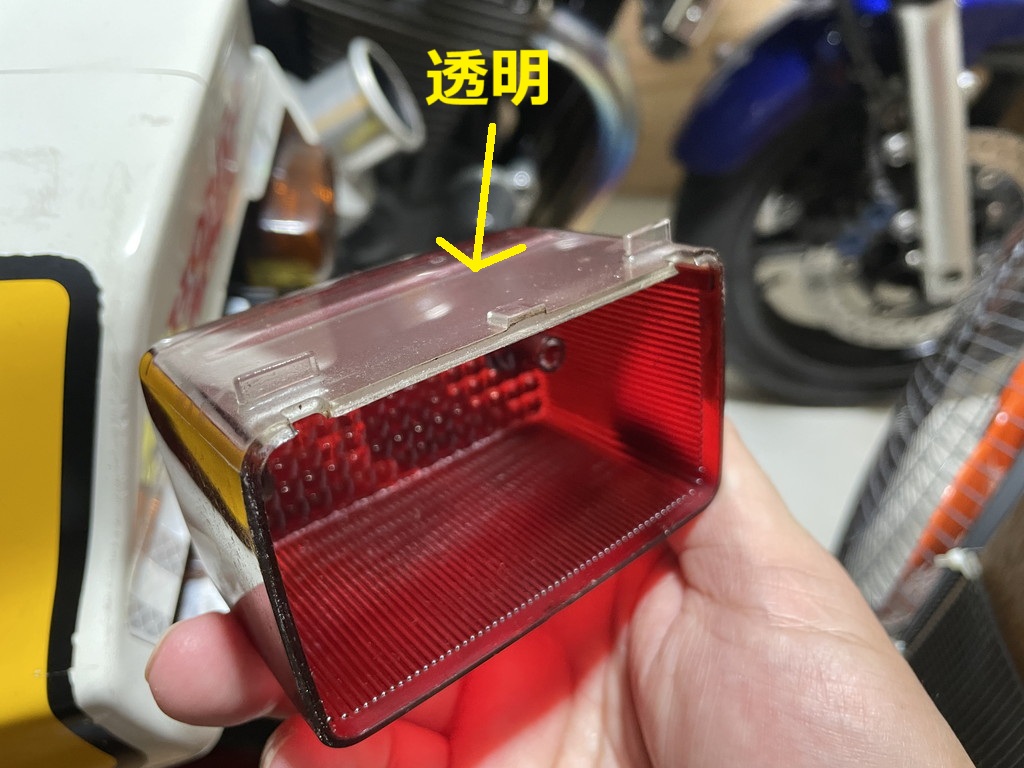 ブレーキランプカバーは下部がクリアになっていて、下方に照射される光に赤色が付かない構造になっています。