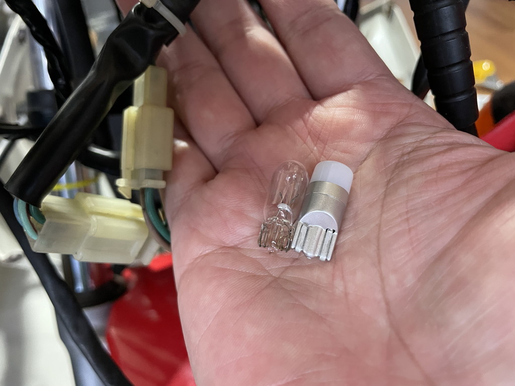 インパネ灯自体は既にLEDバルブになっていたので、今回はニュートラルランプとウインカーパイロットランプを交換します。