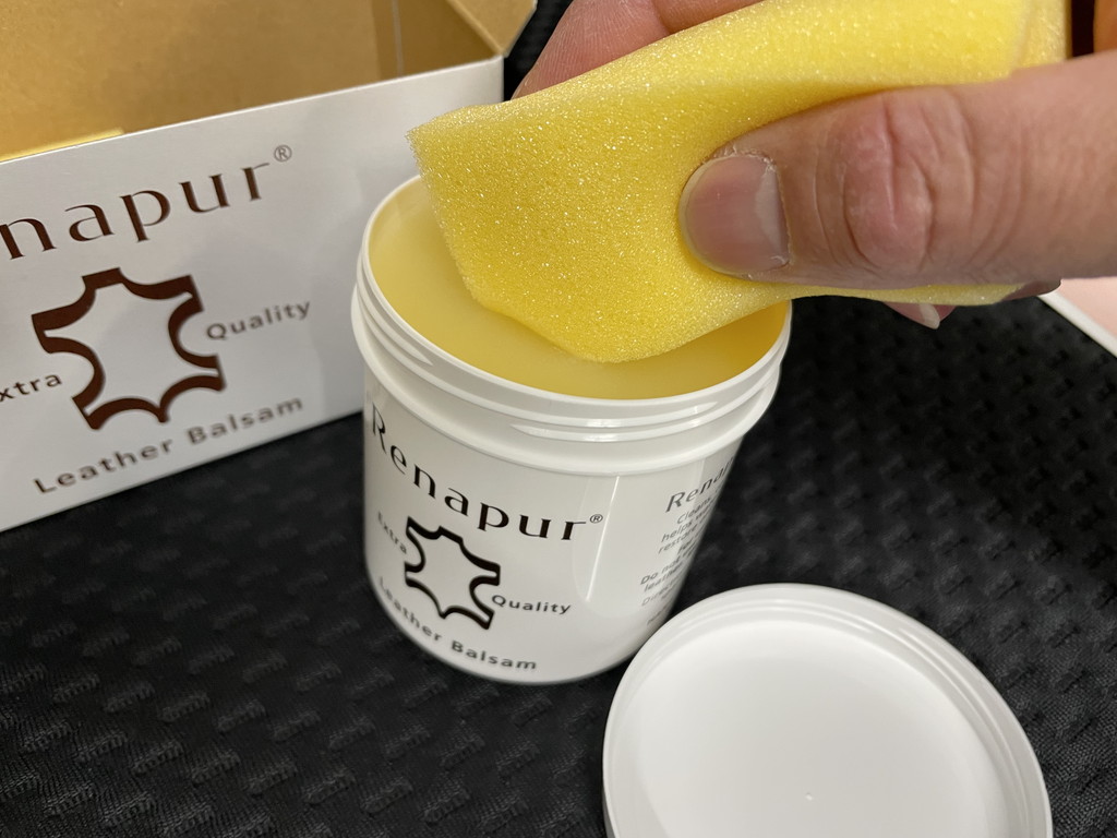 早速ラナパーレザートリートメントを塗ってみますよ。