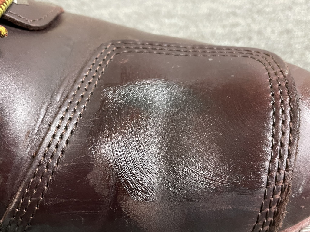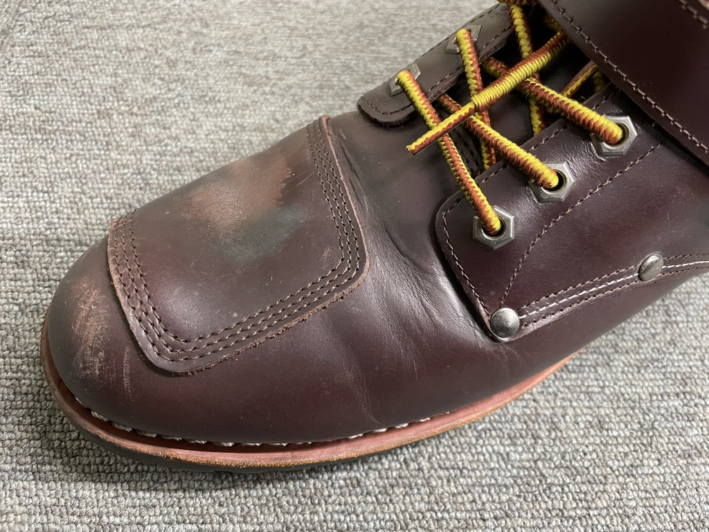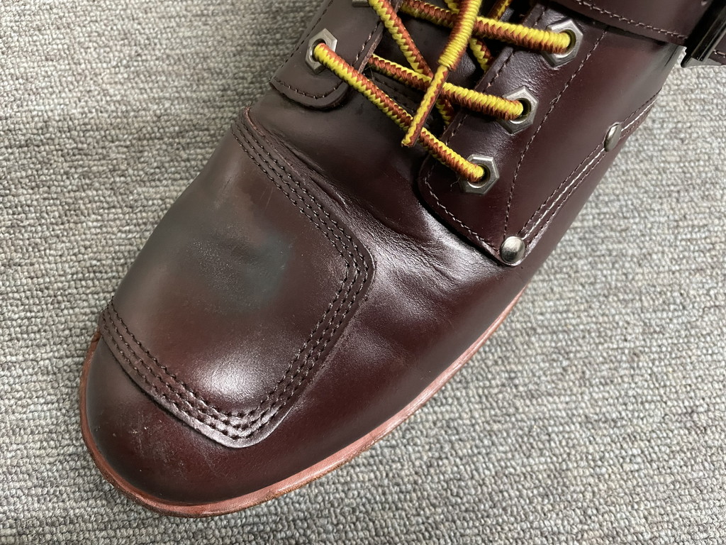 シフトペダルと接触する部分はもちろん、接触した記憶が無いツマ先もイイ感じでダメージが入ってます。