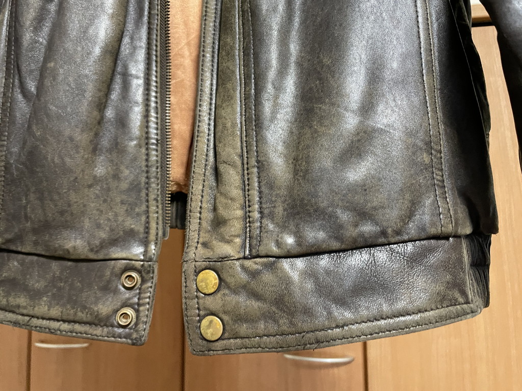 このダブルライダースは牛革なので非常に丈夫ですが硬いので着心地は少しゴワゴワ。