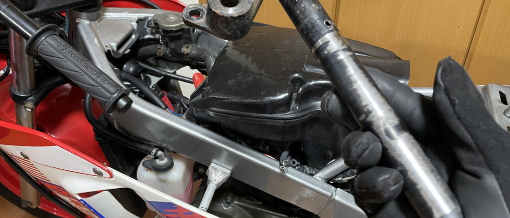 目の前なので少し気になります 市販50ccクラスでは最速と言われる伝説の原付バイクNSR50ですが、なんだかんだ言って所詮50ccなのでトルクは薄い。 走行中はスロットル全開状態が多いです。 街乗りで … 続きを読む NSR50レストア⑬ハイスロ化とハンドルバー塗装