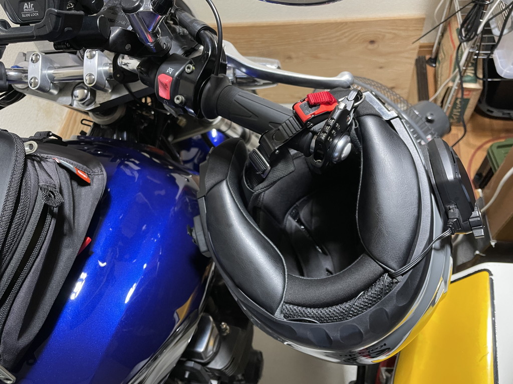 コレはあくまで防犯意識の低いライダーが不用意に置いたヘルメットを盗んでいく連中をそうていした、セキュリティーとしては簡易なモノですが、そんなライト窃盗犯の方が圧倒的に多いのである程度の対策にはなると思いますね。