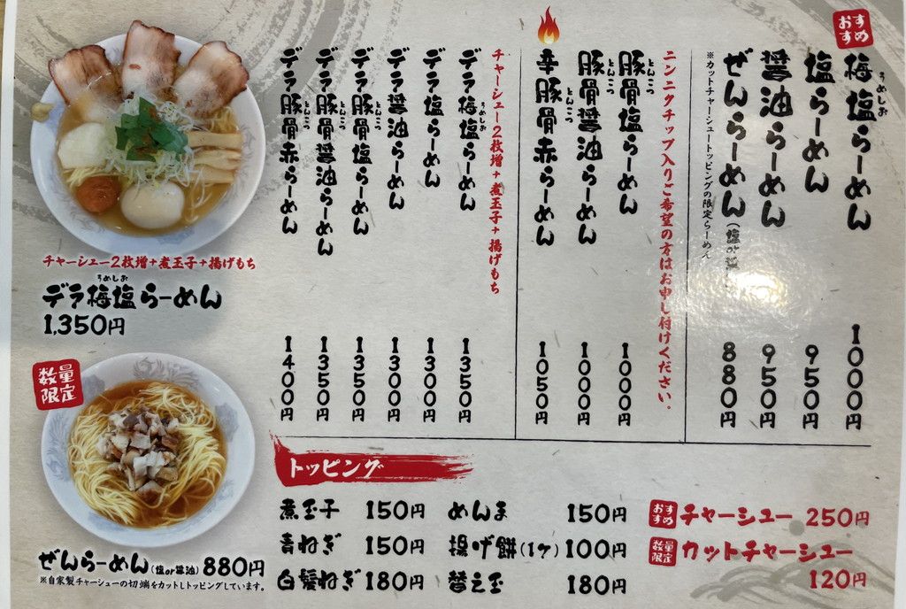 デラ梅塩ラーメン1,350円(税込)