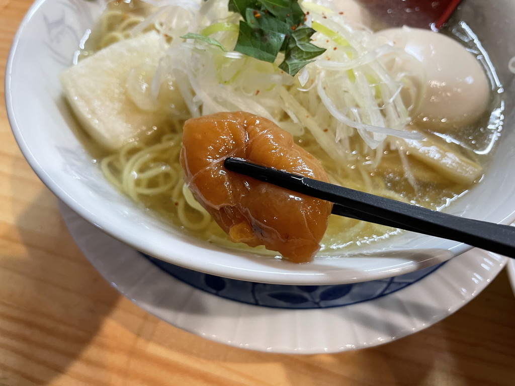 スッキリあっさりでもしっかりした塩気を感じる上品なスープに、梅肉が合わさって面白い味です。