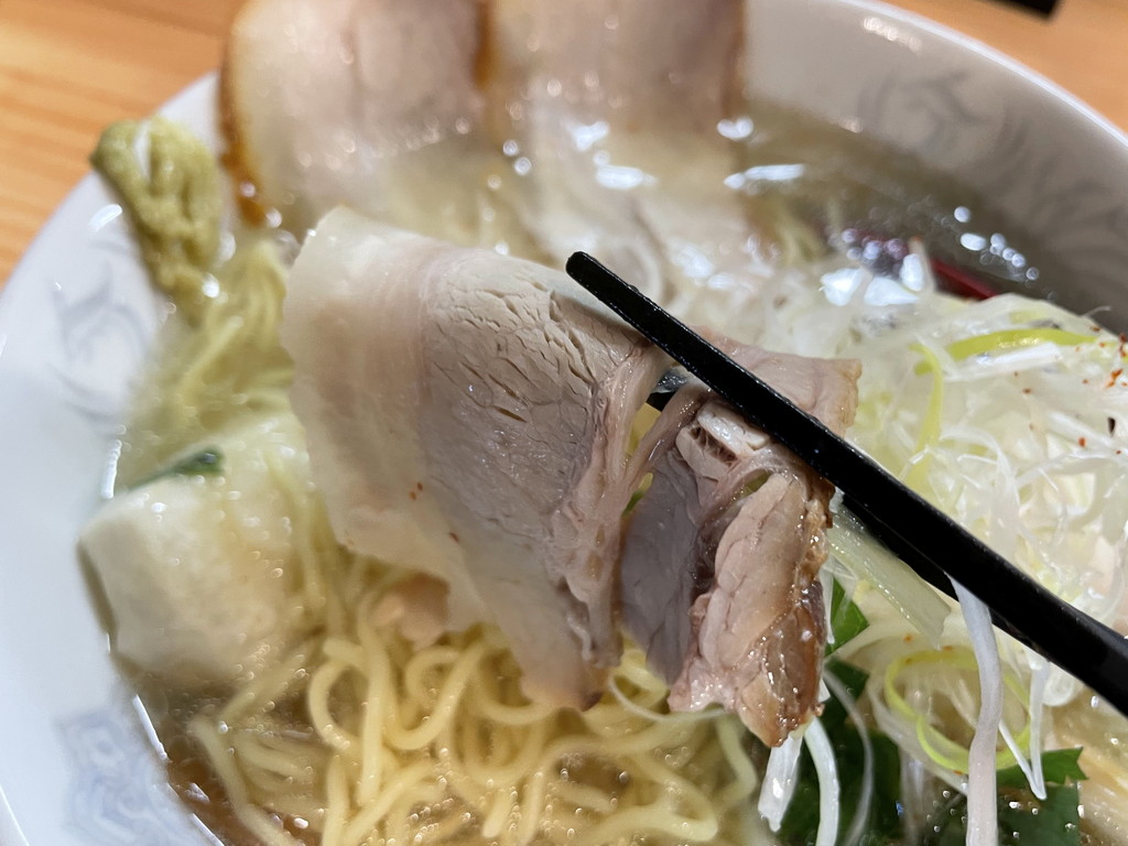 チャーシューはあまり脂を感じさせない触感です。