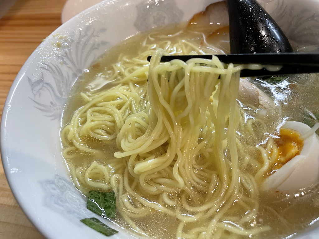 豚骨ラーメンの極細麺ではありませんが、注文からの提供時間は早い。