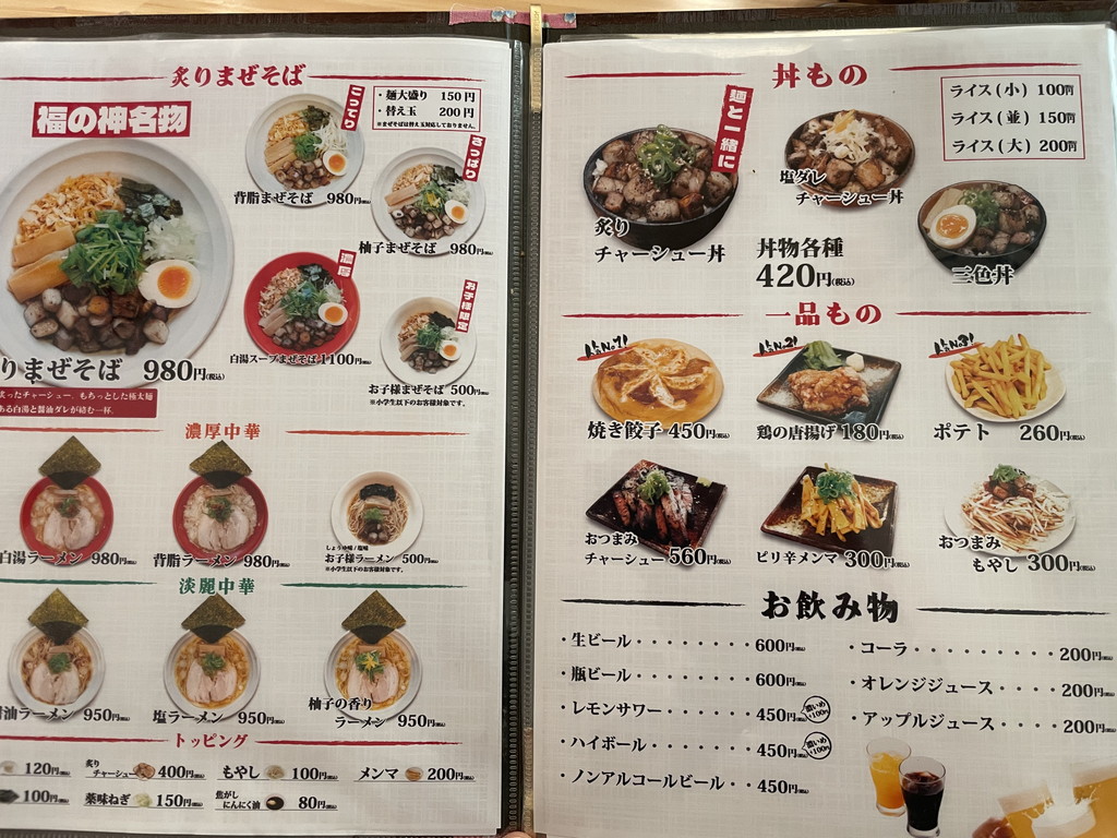回転率が重視される他のラーメン屋さんでは嫌がられる事が多いお子様の対応ですが、福の神さんでは笑顔でウェルカムなのでファミリー層は助かります ( ´∀` )