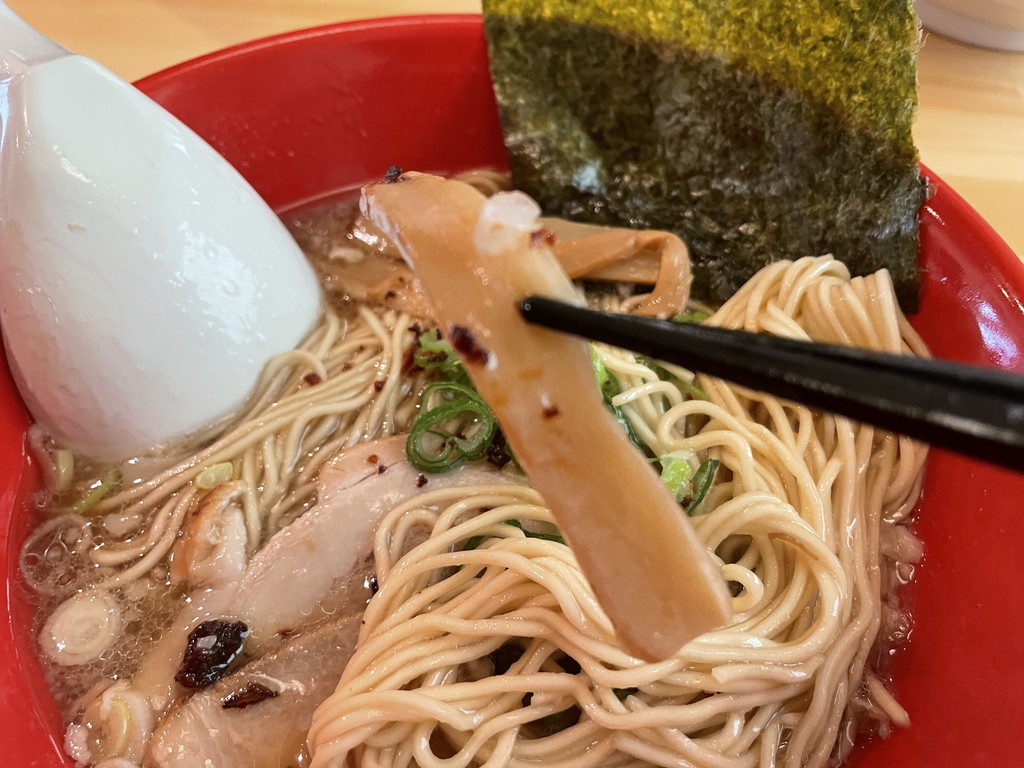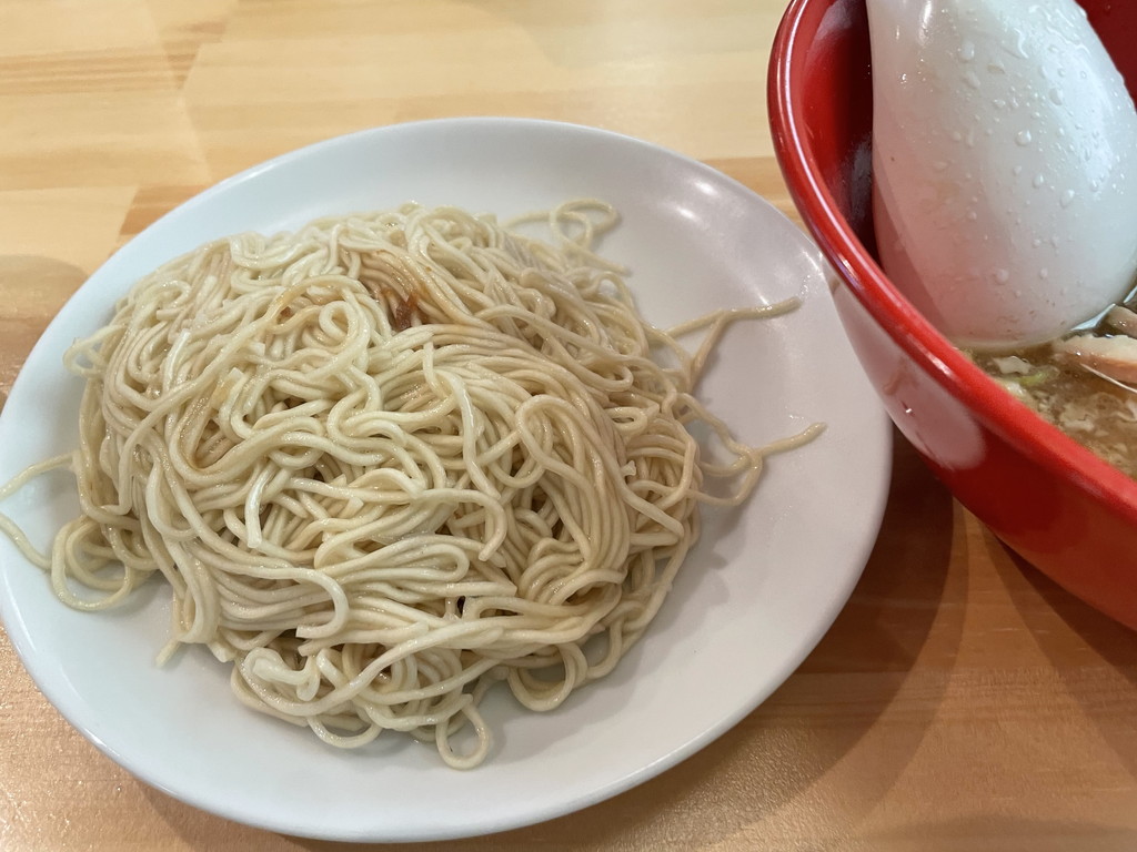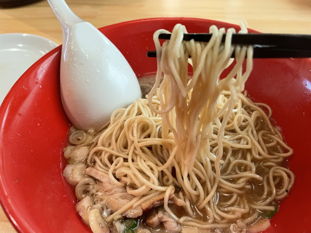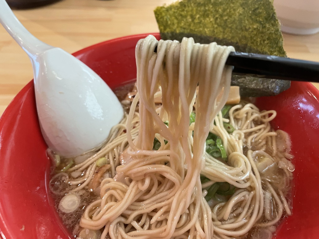 麺はラーメンと同じ?なのか細麺になっていて、更に少し薄味という違いもあります。