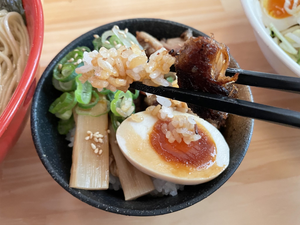 炙りチャーシューの香ばしさと絶妙なタレでご飯が進みます。