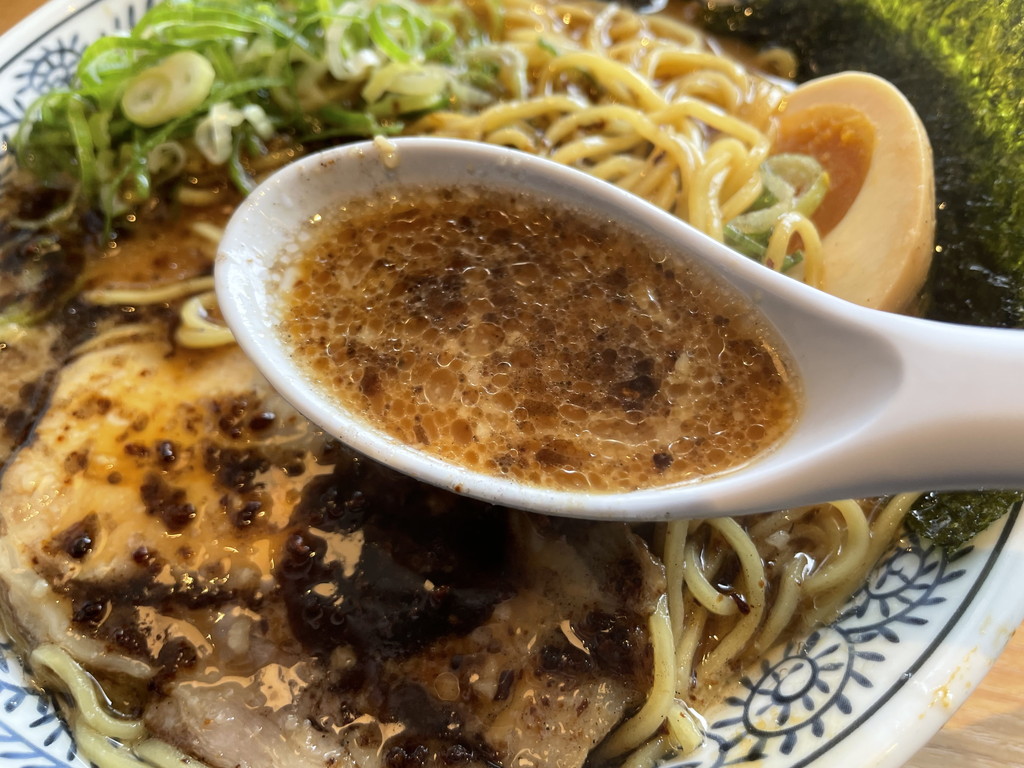 優しい感じのとんこつスープに焦がしマー油のアクセントが良い感じ。