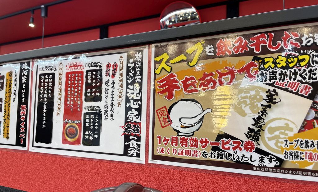 調べるとラーメンを注文した人がご飯食べ放題になる魂心家のサービスらしい。