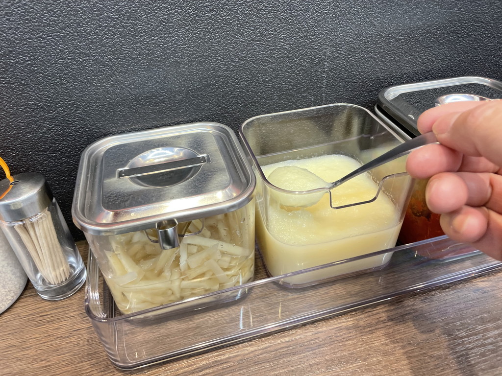 テーブルには各種薬味があります。