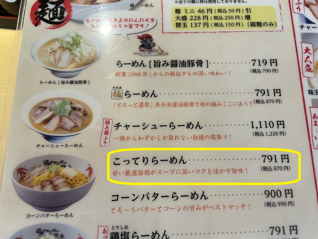 いつもは定番のラーメン(旨み醤油豚骨)一択ですが、新しい選択肢がある事に気が付きました。
