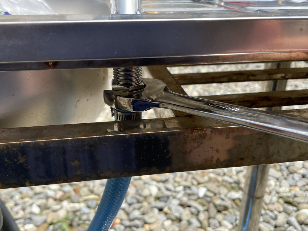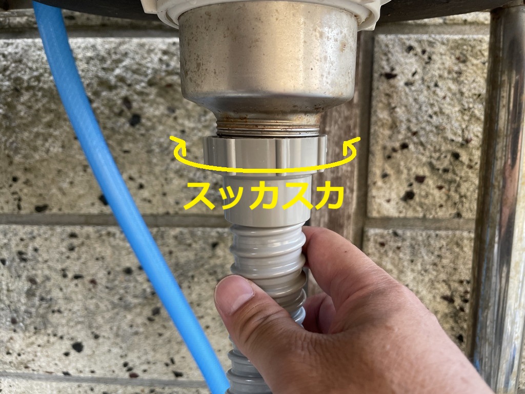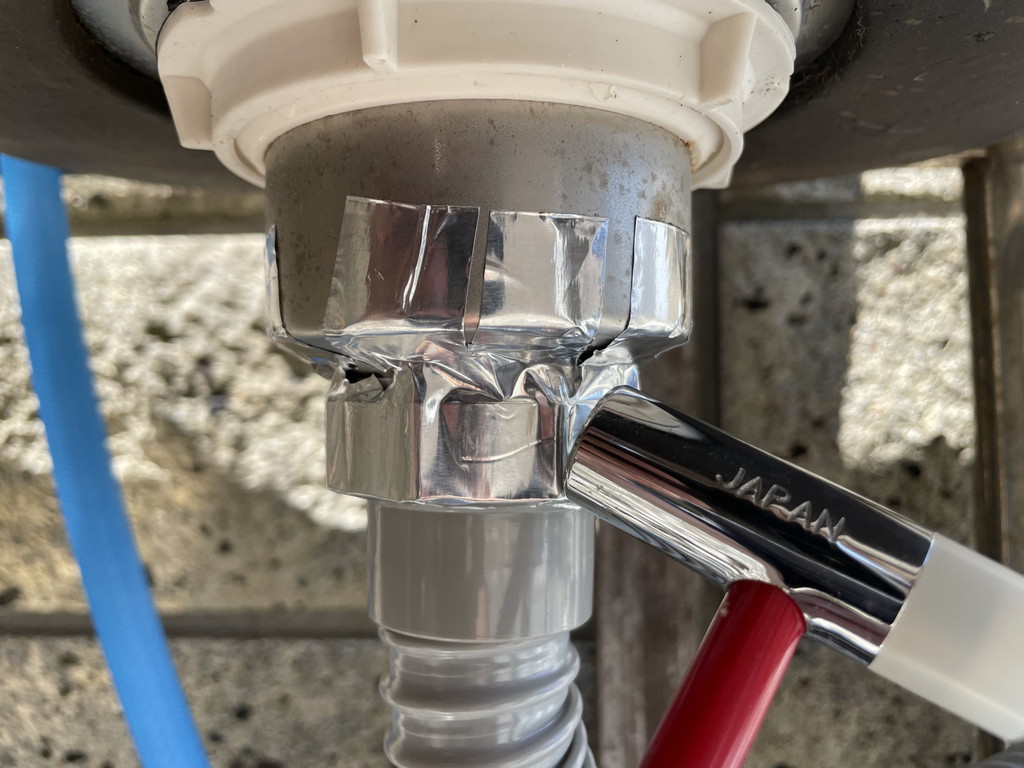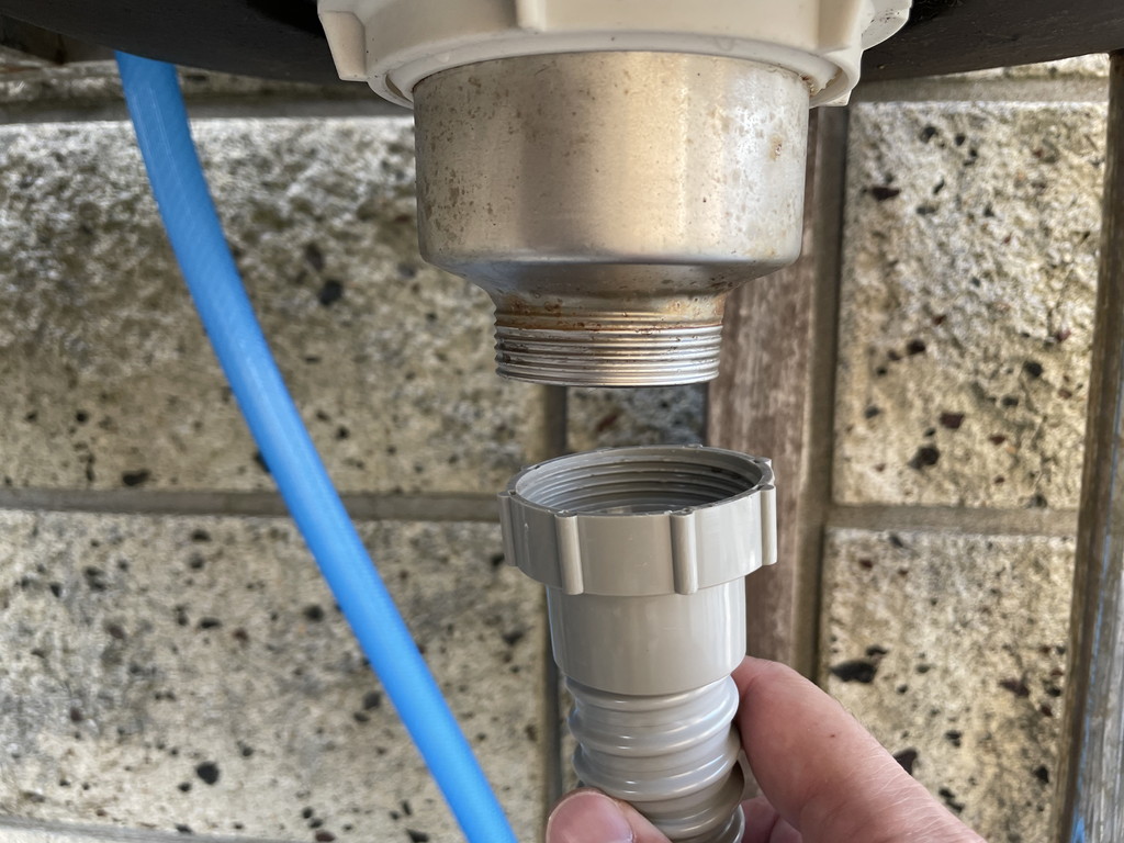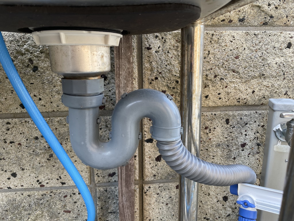 あとこのシンクは屋外で使用するし、排水もそのまま側溝に流すのでS字部分は不要なんですよね。