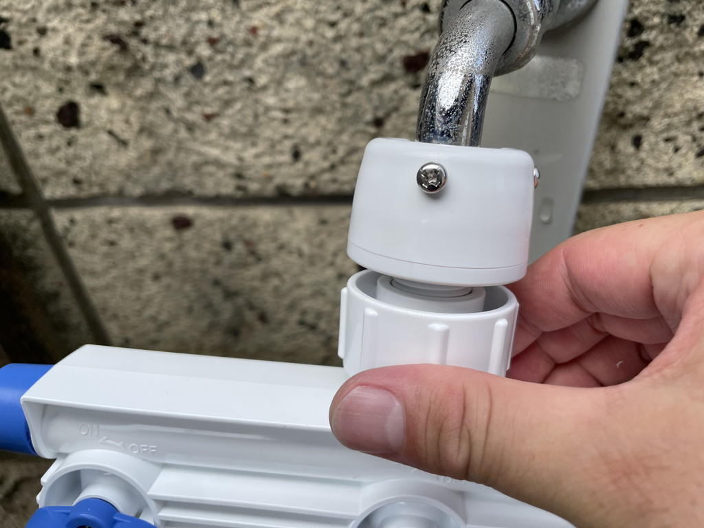他の製品ではワンタッチだった蛇口に繋ぐこの部分ですが、3分岐タイプではネジ式でした。
