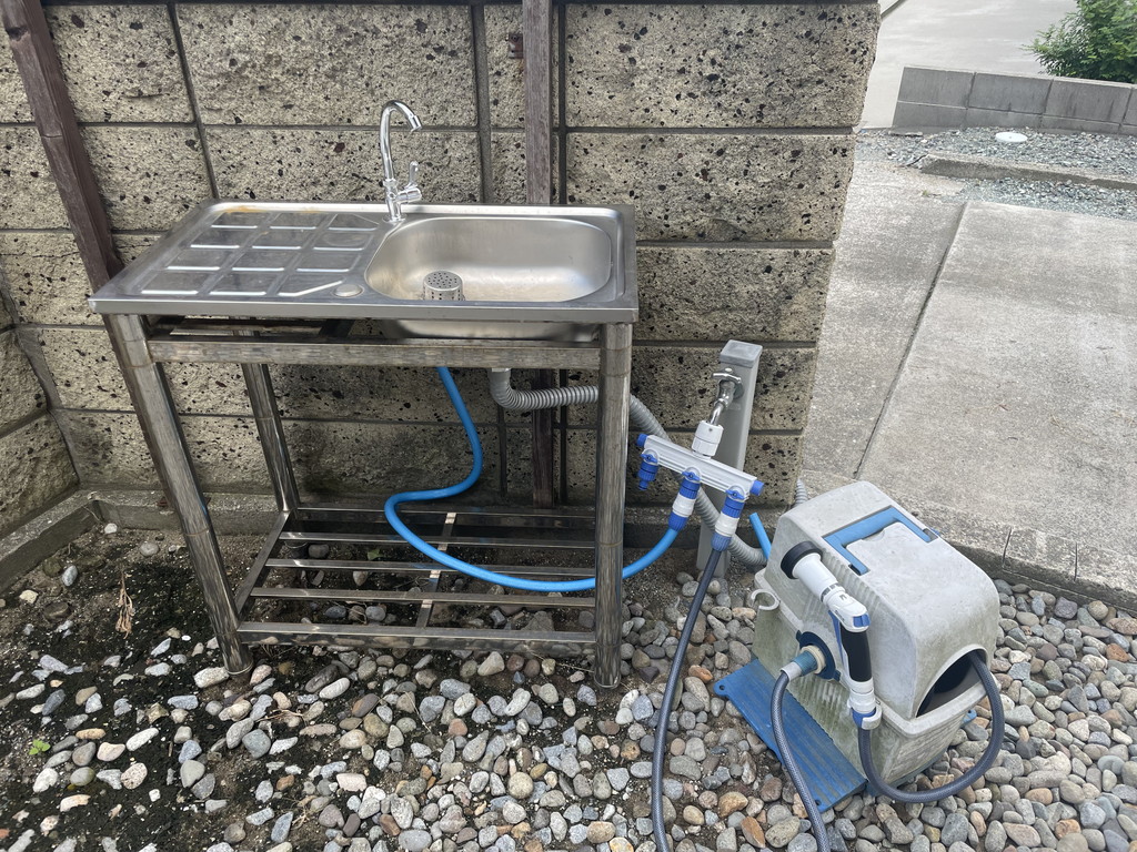 シンクを追加した事によって作業後の手洗いや各種給水、BBQの準備等が色々捗ると予想。